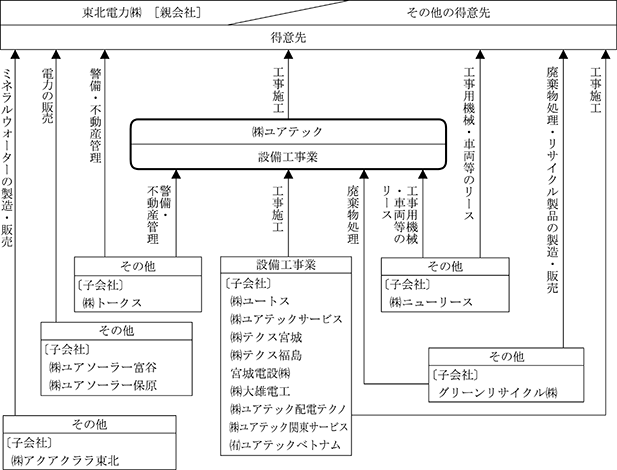 当社グループは、当社、親会社の東北電力㈱(電気事業)、連結子会社の15社で構成され、設備工事業を主な事業としている。