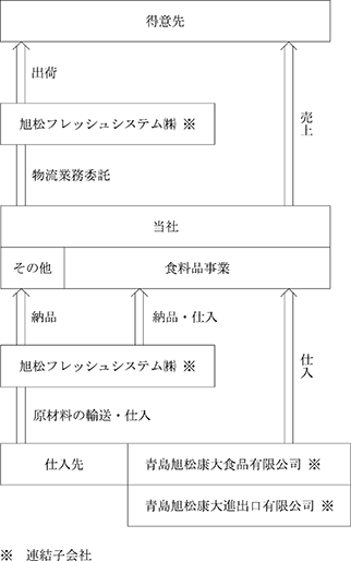 (主な関係会社)当社、旭松フレッシュシステム㈱、青島旭松康大食品有限公司、青島旭松康大進出口有限公司