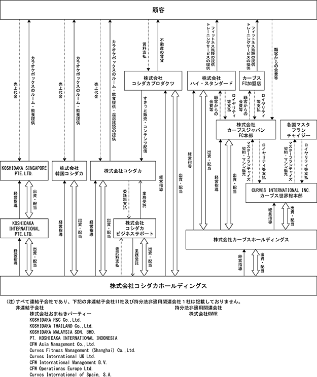 日本国内における独占事業権を取得して、女性専用30分フィットネス「カーブス」を直営及びフランチャイズ方式により日本国内で展開しております。株式会社カーブスジャパンは、カーブス事業のフランチャイズ本部事業と本部直営店舗6店舗を運営するとともに、会員向けの物販としてプロテインやグッズ等の販売を行っており、株式会社ハイ・スタンダードは、北海道、埼玉県、東京都及び千葉県において、グループ直営店舗の運営を行っております。