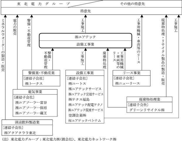 ①役員の兼任4名、出向2名 ②当社は空調管工事等を発注している。
