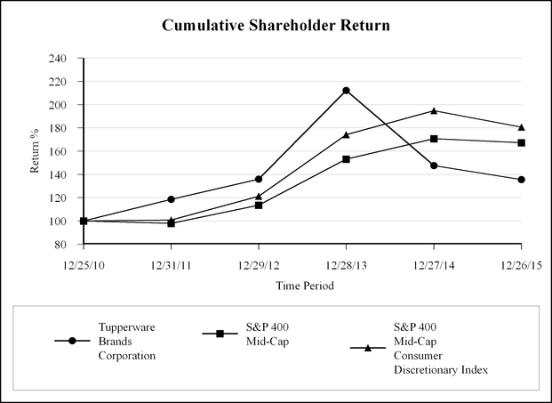 The following financial statements from Tupperware Brands Corporation's Annual Report on Form 10-K for the year ended December 26, 2015, formatted in XBRL (eXtensible Business Reporting Language): (i) Consolidated Statements of Income, (ii) Consolidated Statements of Comprehensive Income, (iii) Consolidated Balance Sheets, (iv) Consolidated Statements of Shareholders' Equity, (v) Consolidated Statements of Cash Flows, (vi) Notes to the Consolidated Financial Statements, tagged in detail, and (vii) Schedule II. Valuation and Qualifying Accounts.