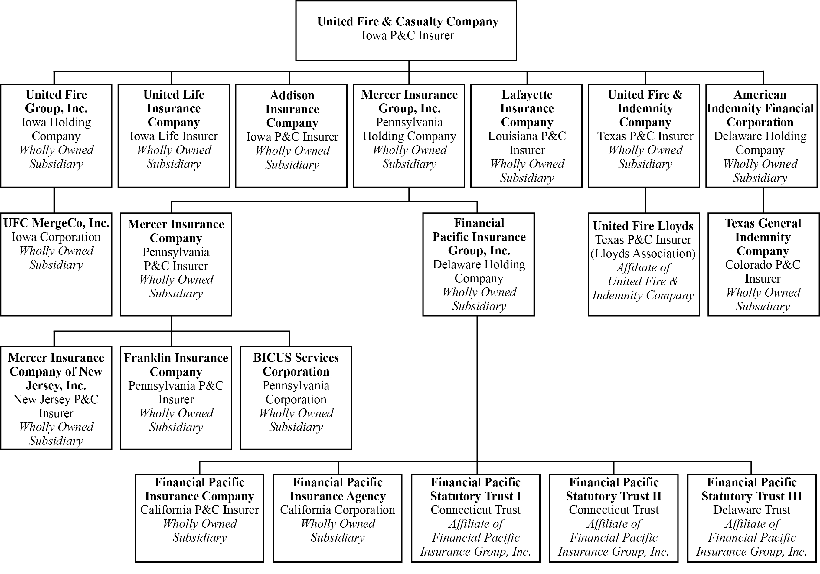 The terms “Company,” “we,” “us,” or “our” refer, as the context requires, to United Fire Group, Inc., United Fire & Casualty Company, United Fire Group, Inc. and its consolidated subsidiaries and affiliates, or to United Fire & Casualty Company and its consolidated subsidiaries and affiliates. We are engaged in the business of writing property and casualty insurance and life insurance and selling annuities. United Fire & Casualty Company was incorporated in Iowa in January 1946. Our principal executive office is located at 118 Second Avenue SE, P.O. Box 73909, Cedar Rapids, Iowa 52407-3909. Telephone: 319-399-5700.