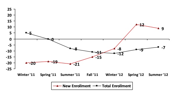 Enrollment. Average enrollment decreased 10% to 48,521 students for the nine months ended September 30, 2012 compared to 53,791 students for the same period in 2011.
