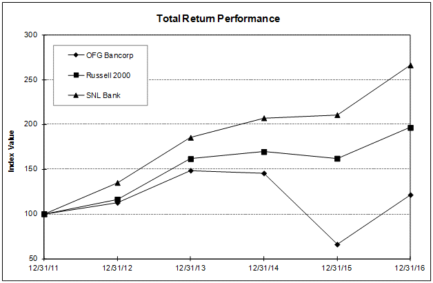The aggregate market value of the common stock held by non-affiliates of OFG Bancorp (the “Company”) was approximately $364.5 million as of June 30, 2016 based upon 44,913,719 shares outstanding and the reported closing price of $8.30 on the New York Stock Exchange on that date.