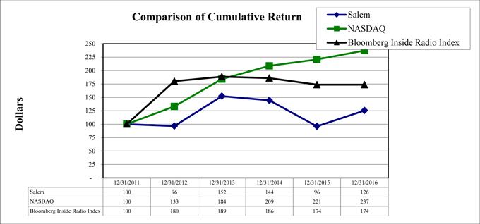 You should not place undue reliance on these forward-looking statements, which reflect our expectations based upon data available to the company as of the date of this report. Such statements are subject to certain risks and uncertainties that could cause actual results to differ materially from expectations. These risks, as well as other risks and uncertainties, are detailed in Salem’s reports on Forms 10-K, 10-Q and 8-K filed with or furnished to the Securities and Exchange Commission. Except as required by law, the company undertakes no obligation to update or revise any forward-looking statements made in this report. Any such forward-looking statements, whether made in this report or elsewhere, should be considered in context with the various disclosures made by Salem about its business. These projections and other forward-looking statements fall under the safe harbors of Section 27A of the Securities Act of 1933, as amended (the “Securities Act”), and Section 21E of the Securities Exchange Act of 1934, as amended (the “Exchange Act”).