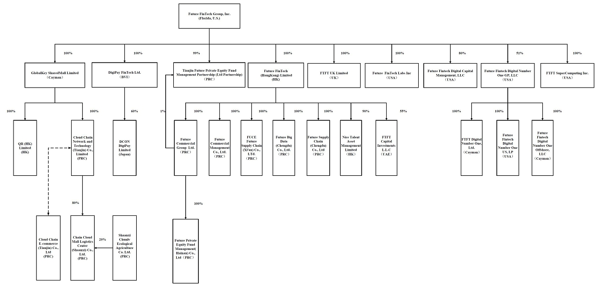 Future FinTech is a holding company incorporated under the laws of the State of Florida. The Company historically engaged in the production and sale of fruit juice concentrates (including fruit purees and fruit juices), fruit beverages (including fruit juice beverages and fruit cider beverages) in People’s Republic of China (“PRC” or “China”). Due to drastically increased production costs and tightened environmental laws in China, the Company had transformed its business from fruit juice manufacturing and distribution to a real-name blockchain based e-commerce platform, supply chain financing services and trading business and financial technology business. The main business of the Company includes an online shopping platform, Chain Cloud Mall (“CCM”), which is based on blockchain technology; supply chain financing services and trading, financial technology service business and the application and development of blockchain-based technology in financial technology services. The Company has also expanded into financial services and cryptocurrency market data and information service businesses.