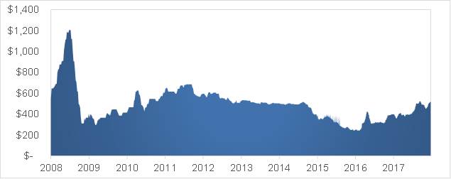 During the fourth quarter of 2017, the Company identified an increase in the pre-tax discount rate at a higher intensity than that contemplated in the quarterly monitoring conducted during the year in the North America segment, where the increase in the pre-tax discount rate was 0.5% compared to 2016.