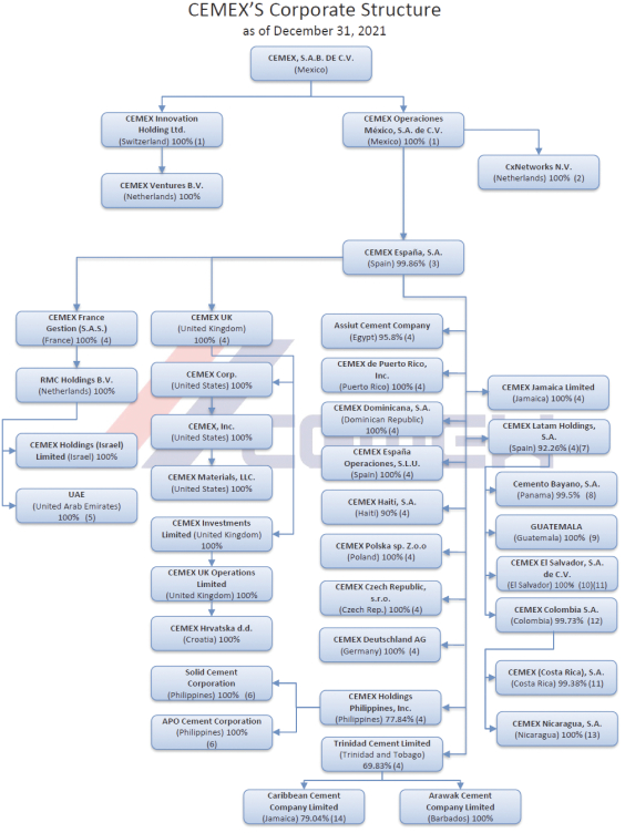 ) organized under the laws of the United Mexican States (“Mexico”). Except as the context otherwise may require, references in this annual report to “CEMEX,” the “Company,” “we,” “us” or “our” refer to CEMEX, S.A.B. de C.V. and its consolidated entities. See note 1 to our 2021 audited consolidated financial statements included elsewhere in this annual report.
