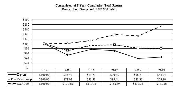 2019 Form of Notice of Grant of Performance Share Unit Award and Award Agreement under the 2017 Long-Term Incentive Plan between Devon Energy Corporation and executive officers for performance based restricted share units awarded (incorporated by reference to Exhibit 10.2 to Registrant’s Form 10-Q filed May 1, 2019; File No. 001-32318).** |