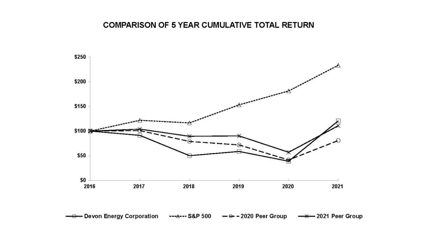 2021 Form of Notice of Grant of Performance Share Unit Award and Award Agreement under the 2017 Long-Term Incentive Plan between Devon Energy Corporation and certain officers for performance based restricted share units awarded. (incorporated by reference to Exhibit 10.2 to the Company’s Form 10-Q filed May 5, 2021; File No. 001-32318).** |