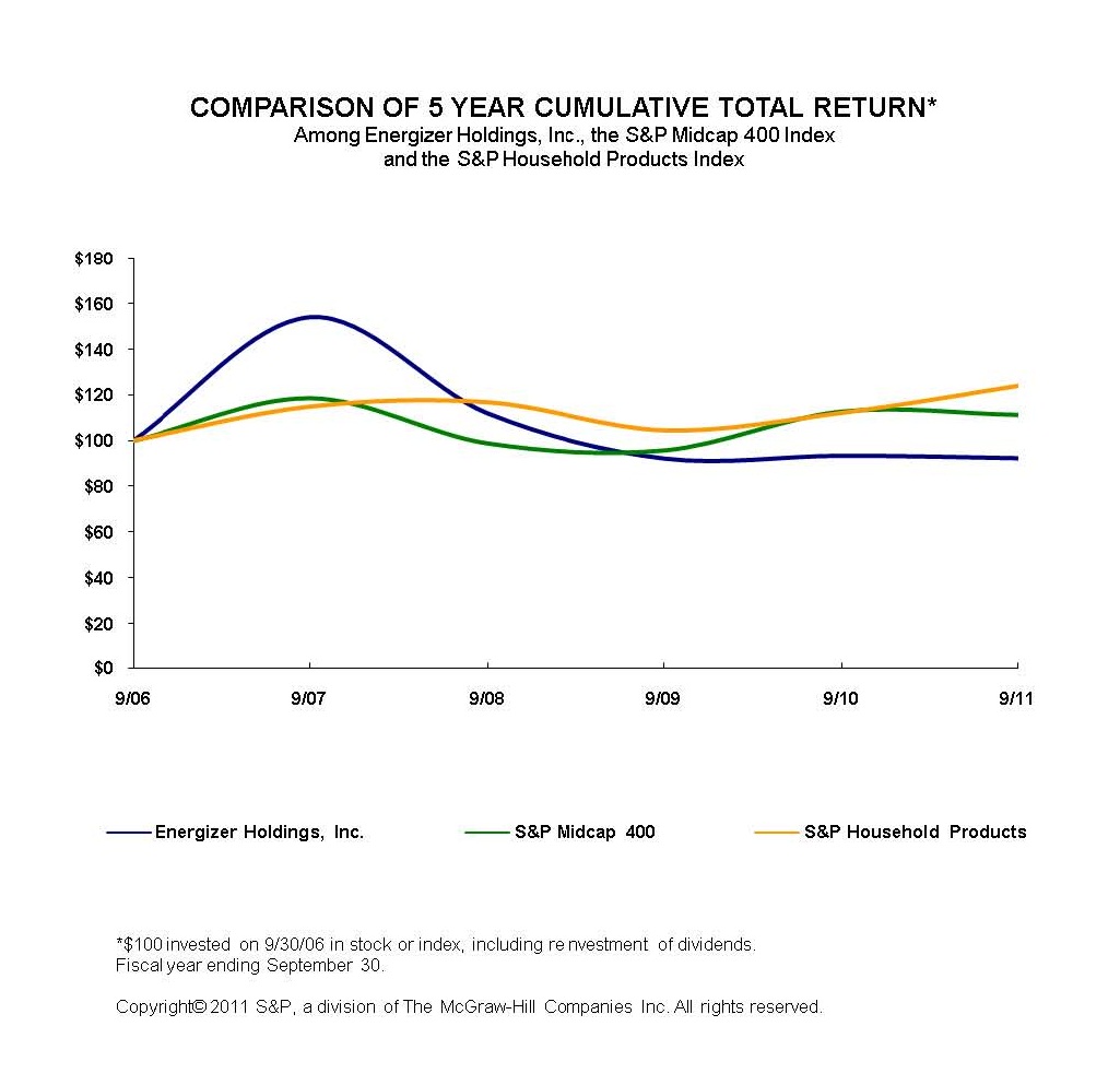Portions of the Energizer Holdings, Inc. 2011 Annual Report to Shareholders for the year ended September 30, 2011, incorporated by reference herein.**