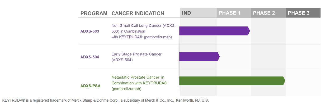Advaxis is currently mainly concentrating on its disease-focused, hotspot/”off-the-shelf” neoantigen-directed therapies called ADXS-HOT. ADXS-HOT is a program that leverages the Company’s proprietary Lm technology to target hotspot mutations that commonly occur in specific cancer types. ADXS-HOT drug candidates are designed to target acquired shared or “public” mutations in tumor driver genes along with other cancer-associated antigens that also commonly occur in specific cancer types.