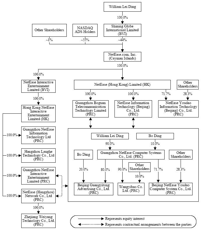 On May 4, 2009, an employee of the Company incorporated Zhejiang Province NetEase Foundation (“NetEase Foundation”) and members of its board consisted of the Company’s Chief Executive Officer and certain senior managers. The initial share capital of RMB10.0 million at formation of NetEase Foundation was donated by NetEase Beijing. Throughout 2009, NetEase Beijing made a total contribution of approximately RMB10.4 million, including the foregoing initial share capital contribution to NetEase Foundation. As of December 31, 2009, NetEase Foundation was still in the process of applying for the approved charitable organization status under the relevant Chinese income tax laws. Accordingly, NetEase Beijing did not record any tax benefit associated with its donation made to NetEase Foundation in 2009.  In April 2010, NetEase Foundation received the relevant government authority’s approval and became an approved charitable organization; hence, NetEase Beijing recognized the tax benefit for its 2009 contribution in fiscal year 2010 accordingly.  During 2010, NetEase Foundation received donations totaling RMB26.2 million from certain subsidiaries of the Company. There was no outstanding balance between the Company and NetEase Foundation as of December 31, 2009 and 2010.
