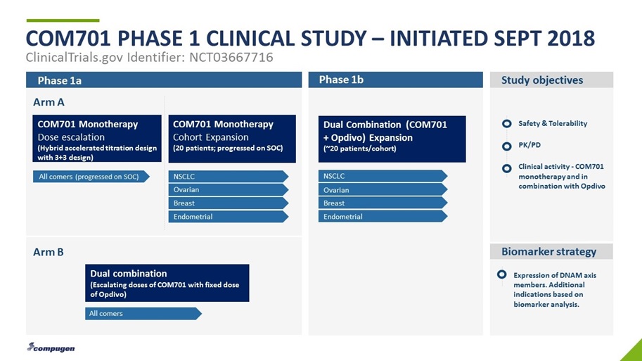 On February 26, 2019, the Company announced a corporate restructuring to reduce costs by consolidating and streamlining R&D operations. Anticipated cost reductions are expected to extend the Company’s cash runway through mid-2020 to enable the planned expansion of the ongoing Phase 1 study for COM701. In addition, the Company will maintain investment in its proprietary computational discovery platform and will continue to advance its earlier stage immuno-oncology pipeline programs, which are the Company’s two long-term core value drivers.