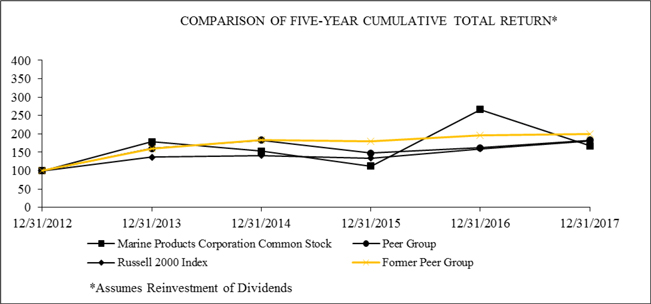 The aggregate market value of Marine Products Corporation common stock held by non-affiliates on June 30, 2017, the last business day of the registrant’s most recent second fiscal quarter, was $125,805,415 based on the closing price on the New York Stock Exchange on June 30, 2017 of $15.61 per share.