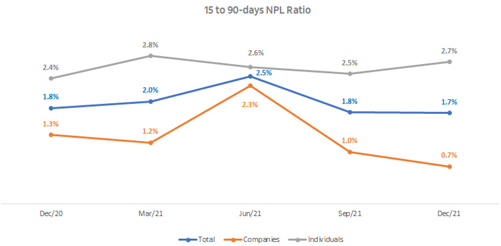 | (a) | increase in 2020 and 2021 in loan and financing operations, especially for micro, small and medium-sized companies due to the measures adopted for mitigation of the impacts of COVID-19 by the authorities with the creation of programs such as PESE, PRONAMPE, PEAC-FGI and CGPE, which balance in December 2021 is R$ |