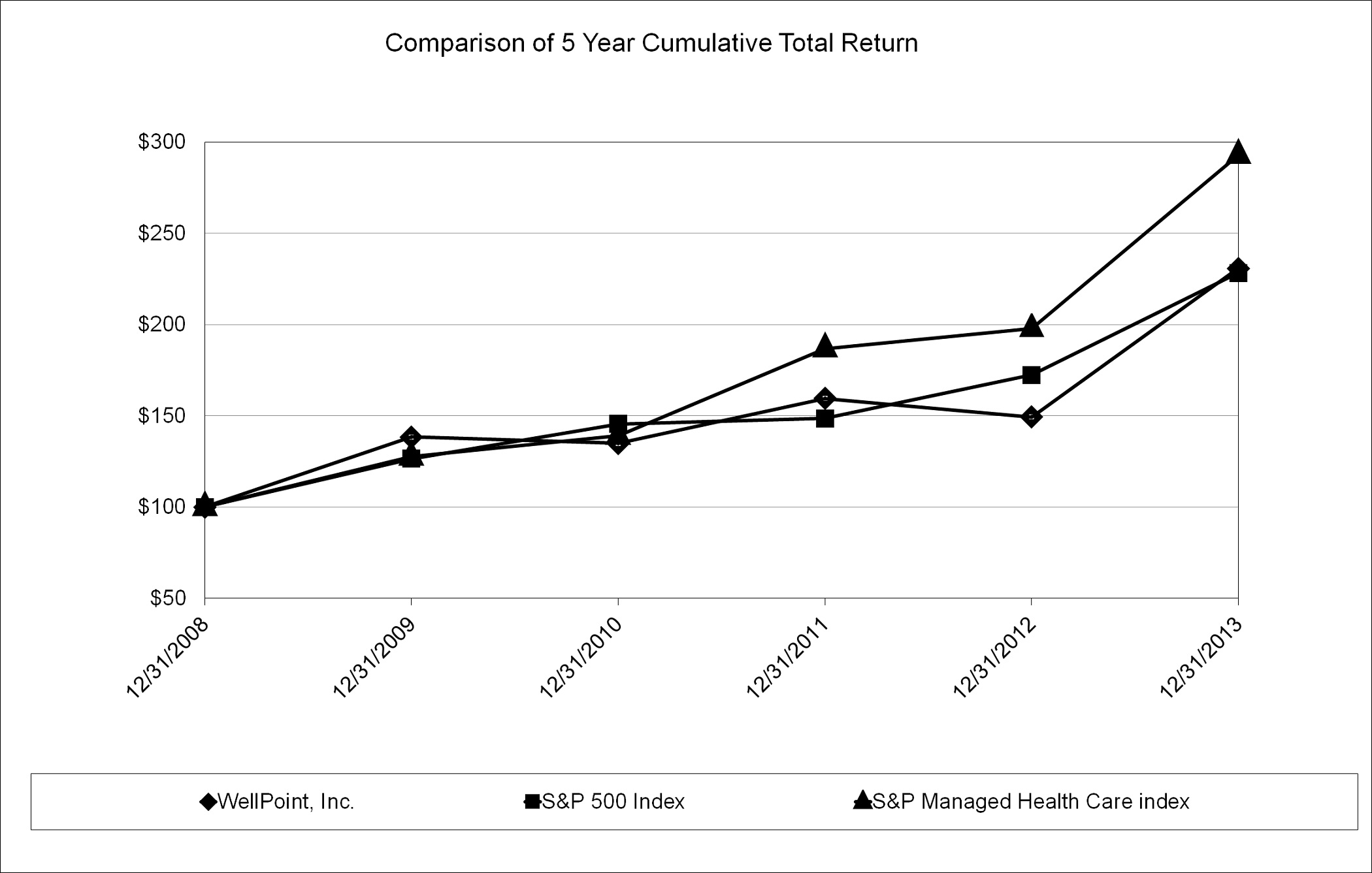 The following materials from WellPoint, Inc.’s Annual Report on Form 10-K for the year ended December 31, 2013, formatted in XBRL (Extensible Business Reporting Language): (i) the Consolidated Balance Sheets; (ii) the Consolidated Statements of Income; (iii) the Consolidated Statements of Comprehensive Income; (iv) the Consolidated Statements of Cash Flows; (v) the Consolidated Statements of Shareholders’ Equity; (vi) the Notes to Consolidated Financial Statements and (vii) Financial Statement Schedule II.