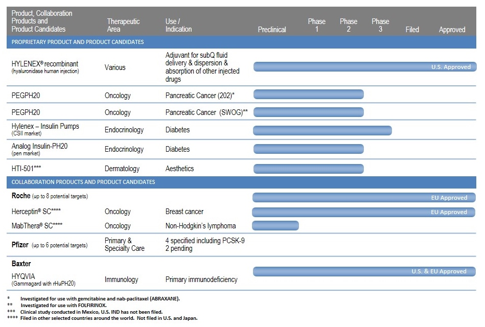 Our proprietary and collaboration products have numerous competitors in the U.S. and abroad including, among others, major pharmaceutical and specialized biotechnology firms, universities and other research institutions that have developed competing products. The competitors for Hylenex recombinant include, but are not limited to, Valeant Pharmaceuticals International, Inc. and Amphastar Pharmaceuticals, Inc. For our ultrafast insulin product candidates, such competitors may include Biodel Inc., Eli Lily, Sanofi Aventis, Novo Nordisk Inc. and Mannkind Corporation. These competitors may develop technologies and products that are more effective, safer, or less costly than our current or future proprietary and collaboration product candidates or that could render our technologies and product candidates obsolete or noncompetitive. Many of these competitors have substantially more resources and product development, manufacturing and marketing experience and capabilities than we do. In addition, many of our competitors have significantly greater experience than we do in undertaking preclinical testing and clinical trials of pharmaceutical product candidates and obtaining FDA and other regulatory approvals of products and therapies for use in healthcare.