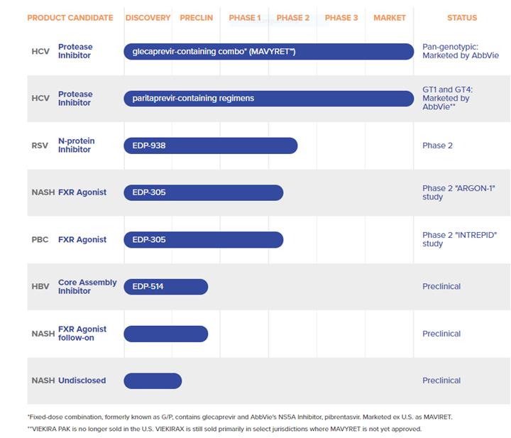 failure of AbbVie’s MAVYRET/MAVIRET regimen to maintain its sales levels;