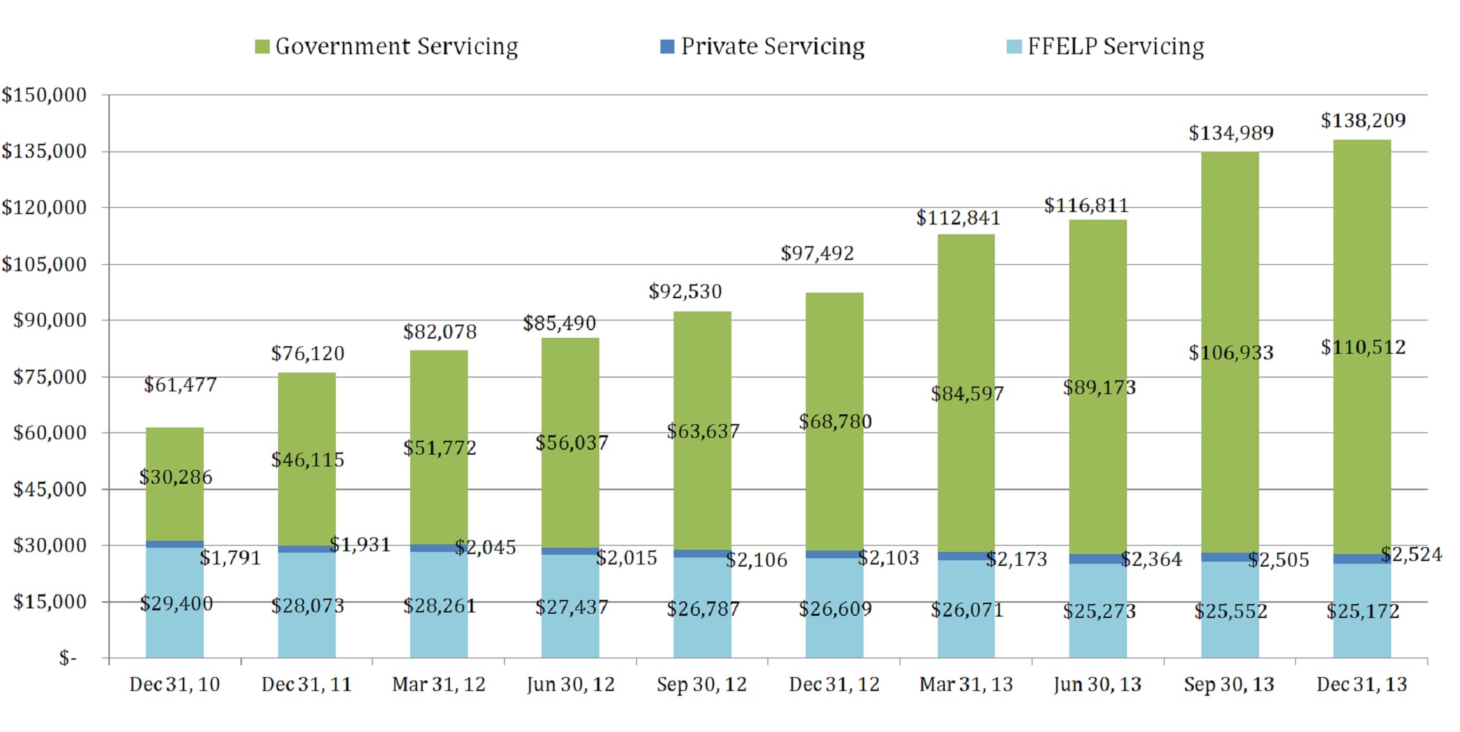 To reduce its reliance on interest income on student loans, the Company has significantly diversified and increased its fee-based education-related services. In June 2009, the Company was awarded a contract to service Federal Direct Loans for the Department. As of December 31, 2013, the Company was servicing more than $110 billion of student loans for more than 5.3 million borrowers on behalf of the Department. In addition, the Company believes there will be opportunities to purchase additional FFELP loan portfolios from current FFELP participants looking to adjust their FFELP businesses, which will generate incremental earnings and cash flow.