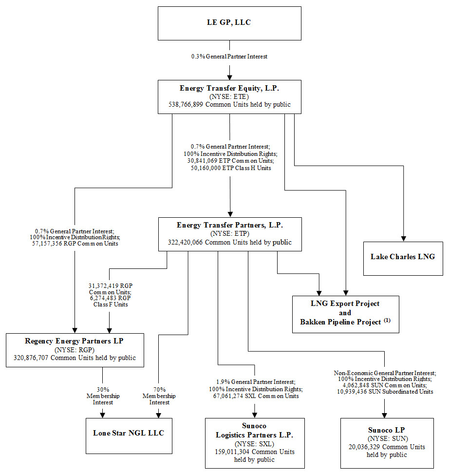 Certain matters discussed in this report, excluding historical information, as well as some statements by Energy Transfer Equity, L.P. (the “Partnership” or “ETE”) in periodic press releases and some oral statements of the Partnership’s officials during presentations about the Partnership, include forward-looking statements. These forward-looking statements are identified as any statement that does not relate strictly to historical or current facts. Statements using words such as “anticipate,” “project,” “expect,” “plan,” “goal,” “forecast,” “estimate,” “intend,” “continue,” “could,” “believe,” “may,” “will” or similar expressions help identify forward-looking statements. Although the Partnership and its General Partner believe such forward-looking statements are based on reasonable assumptions and current expectations and projections about future events, no assurance can be given that such assumptions, expectations or projections will prove to be correct. Forward-looking statements are subject to a variety of risks, uncertainties and assumptions. If one or more of these risks or uncertainties materialize, or if underlying assumptions prove incorrect, the Partnership’s actual results may vary materially from those anticipated, estimated, projected, forecasted, expressed or expected in forward-looking statements since many of the factors that determine these results are subject to uncertainties and risks that are difficult to predict and beyond management’s control. For additional discussion of risks, uncertainties and assumptions, see “Item 1.A Risk Factors” included in this annual report.