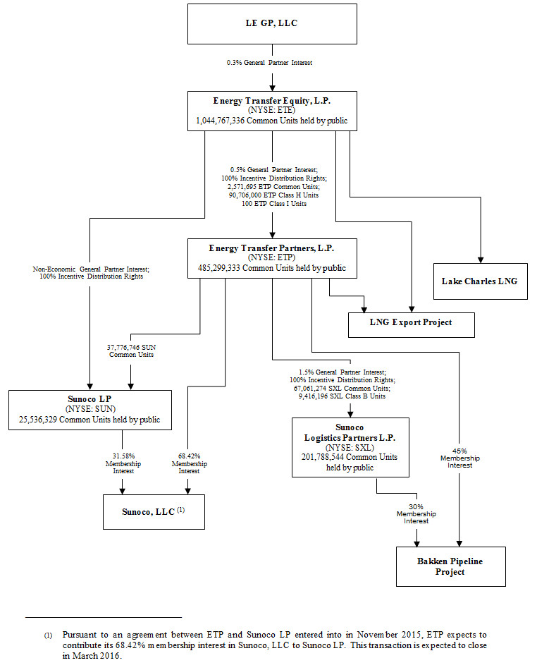 Certain matters discussed in this report, excluding historical information, as well as some statements by Energy Transfer Equity, L.P. (the “Partnership” or “ETE”) in periodic press releases and some oral statements of the Partnership’s officials during presentations about the Partnership, include forward-looking statements. These forward-looking statements are identified as any statement that does not relate strictly to historical or current facts. Statements using words such as “anticipate,” “project,” “expect,” “plan,” “goal,” “forecast,” “estimate,” “intend,” “continue,” “could,” “believe,” “may,” “will” or similar expressions help identify forward-looking statements. Although the Partnership and its General Partner believe such forward-looking statements are based on reasonable assumptions and current expectations and projections about future events, no assurance can be given that such assumptions, expectations or projections will prove to be correct. Forward-looking statements are subject to a variety of risks, uncertainties and assumptions. If one or more of these risks or uncertainties materialize, or if underlying assumptions prove incorrect, the Partnership’s actual results may vary materially from those anticipated, estimated, projected, forecasted, expressed or expected in forward-looking statements since many of the factors that determine these results are subject to uncertainties and risks that are difficult to predict and beyond management’s control. For additional discussion of risks, uncertainties and assumptions, see “Item 1.A Risk Factors” included in this annual report.