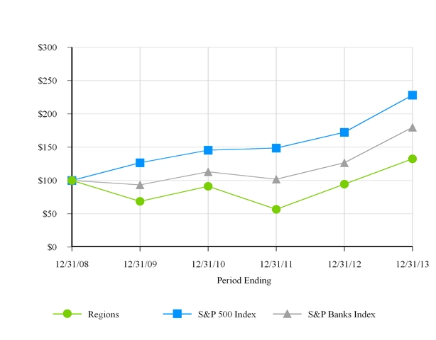 Regions Financial Corporation Executive Incentive Plan, incorporated by reference to Appendix A to Proxy Statement filed by registrant on March 26, 2013 and approved by the stockholders at the annual meeting held May 16, 2013.