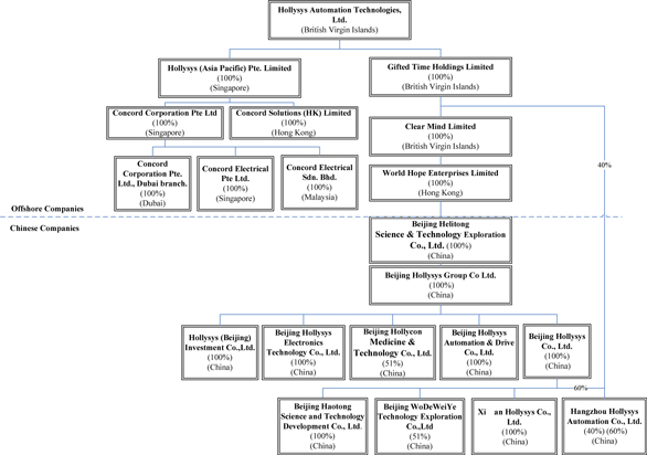 · “Hollysys” “we,” “us,” or “our,” and the “Company,” are references to the combined business of Hollysys Automation Technologies Ltd., a BVI company, and its consolidated subsidiaries, HAP, Concord, CSHK, GTH, Clear Mind, World Hope, Helitong, Beijing Hollysys Group, Hangzhou Hollysys, Hollysys A&D, Beijing Hollysys, Hollysys Electronics, Hollycon, Haotong, WoDeWeiye, Xi’an Hollysys and Hollysys Investment;