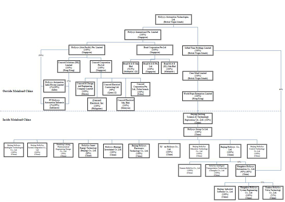 | • | “HollySys Control” refers to Beijing HollySys Control Technology Co., Ltd., a PRC company; |