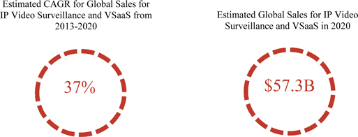 According to a report titled “IP Video Surveillance and VSaaS Market (Technologies, Applications, Services, Geography) – Industry Analysis, Trends, Share, Opportunities and Forecast, 2012 – 2020,” published by Allied Market Research in January 2014 (the “Report”), the global IP Video Surveillance and Video Surveillance as a Service (“VsaaS”) market is expected to reach $57.3 billion by 2020. The global IP Video Surveillance and VSaaS market is expected to grow at a compound annual growth rate (“CAGR”) of 37.3% during the period from 2012 to 2020. North America is expected to achieve the highest share in the IP Surveillance market by 2020, while the Asia Pacific region is expected to experience CAGR of 44.3% during the period from 2013 to 2020, the highest growth rate of any region.