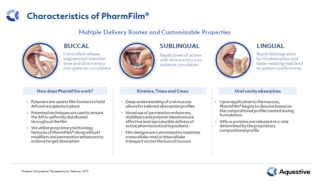 We are a specialty pharmaceutical company focused on developing and commercializing differentiated products to address unmet medical needs. We have a late-stage proprietary product pipeline focused on the treatment of diseases of the Central Nervous System, or CNS. We believe that the characteristics of these patient populations and shortcomings of available treatment options create opportunities for the development and commercialization of meaningfully differentiated medicines. In December 2018, we commercially launched the first of our CNS products, SympazanTM (clobazam) Oral Film, for use as an adjunctive therapy for seizures associated with Lennox-Gastaut Syndrome, or LGS in patients two years and older. Our most advanced proprietary product candidates, which we plan on commercializing ourselves, include (i) Libervant, a buccal soluble film formulation of diazepam for the treatment of recurrent epileptic seizures, for which we expect to complete certain additionally-requested clinical studies and submit a New Drug Application, or NDA, in the second half of 2019, and for which orphan drug and fast track designations have been granted; and (ii) Exservan, formerly known as AQST-117, an oral soluble film formulation of riluzole for the treatment of Amyotrophic Lateral Sclerosis, or ALS, for which orphan drug designation has been granted and for which the Company has started the NDA filing process. We have also developed a proprietary pipeline of complex molecule products addressing large market opportunities beyond CNS indications, which include (i) AQST-108, a sublingual film formulation of epinephrine for the treatment of anaphylaxis, for which we expect to begin our next Phase 1 proof of concept study with our enhanced prototype in the first half of 2019, with completion planned within this year, and (ii) AQST-305, a sublingual film formulation of octreotide for the treatment of acromegaly and neuroendocrine tumors, for which we began a human proof of concept study in Canada during the third quarter of 2018, and, based on anticipated enhancements that may be indicated by that study, we are planning additional human proof of concept trials in the second half of 2019.