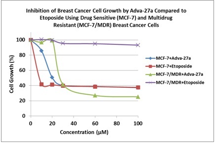 Adva-27a is unaffected by P-Glycoprotein, the enzyme responsible for making cancer cells resistant to anti-tumor drugs.
