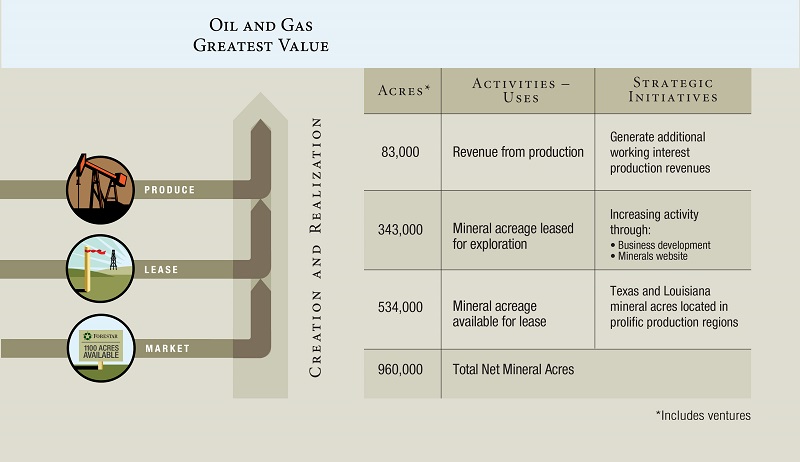 We also seek to maximize value from our owned oil and gas mineral interests through promoting exploration, development and production activities by increasing the acreage leased, lease rates, royalty interests, negotiating additional interests in production and by entering into seismic exploration agreements and joint ventures. In addition, we lease mineral interests for oil and gas exploration and production and participate in working interests or may drill as an operator on both our owned and leased mineral interests.