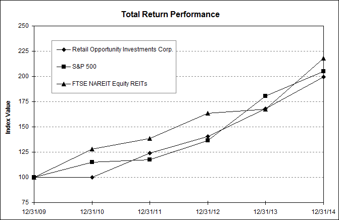 The aggregate market value of the common equity held by non-affiliates of Retail Opportunity Investments Corp. as of June 30, 2014, the last business day of its most recently completed second fiscal quarter, was $1.4 billion (based on the closing sale price of $15.73 per share of Retail Opportunity Investments Corp. common stock on that date as reported on the NASDAQ Global Select Market).