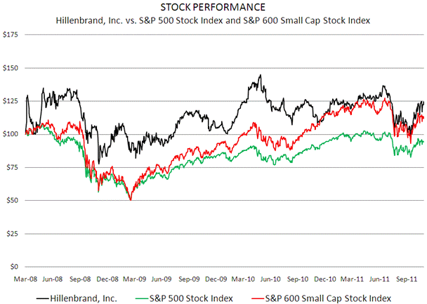 The following materials from the Hillenbrand, Inc. Annual Report on Form 10-K for the year ended September 30, 2011, formatted in XBRL (eXtensible Business Reporting Language); (i) Consolidated Statement of Income for the years ended September 30, 2011, 2010 and 2009, (ii) Consolidated Balance Sheet for the years ended September 30, 2011 and 2010, (iii) Consolidated Statement of Cash Flows for the years ended September 30, 2011, 2010 and 2009, (iv) Consolidated Statement of Shareholders’ Equity and Comprehensive Income for the years ended September 30, 2011, 2010 and 2009, and (v) the Notes to Consolidated Financial Statements, tagged as blocks of text