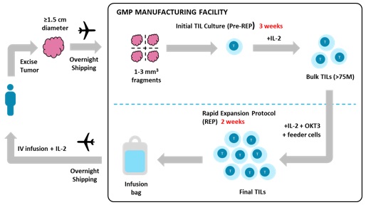 A patient's immune system, particularly their TIL, plays an important role in identifying and killing cancer cells. TIL consist of a heterogeneous population of T cells that can recognize a wide variety of cancer-specific mutations and can overcome tumor escape mechanisms. TIL therapy involves growing a patient's TIL in special culture conditions outside the patient's body, or ex vivo, and then infusing the T cells back into the patient in combination with interleukin-2 (IL-2). By taking TIL away from the immune-suppressive tumor microenvironment in the patient, the T cells can rapidly proliferate. Billions of TIL, when infused back into the patient, are more able to search out and eradicate the tumor.