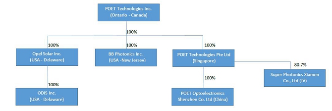 SPX’S capitalization is a combination of committed cash, capital equipment and intellectual property from Sanan IC and intellectual property and know-how from POET, with a combined estimated value of approximately US$50M. Capitalization is on-going and has not yet been completed. POET’s contribution of certain intellectual property and know-how was valued by an independent appraiser at $22.5M. Sanan IC will contribute cash of approximately $25M for capital equipment and operating expenses, with the expectation that the eventual ownership of the JV will be approximately 52% Sanan IC and 48% POET. SPX is an independent company and is operated as a true joint venture, so its financial results are not consolidated into POET’s but are reported as a gain in the value of the contribution to the JV and a gain or loss in the Company’s percentage ownership of the JV.