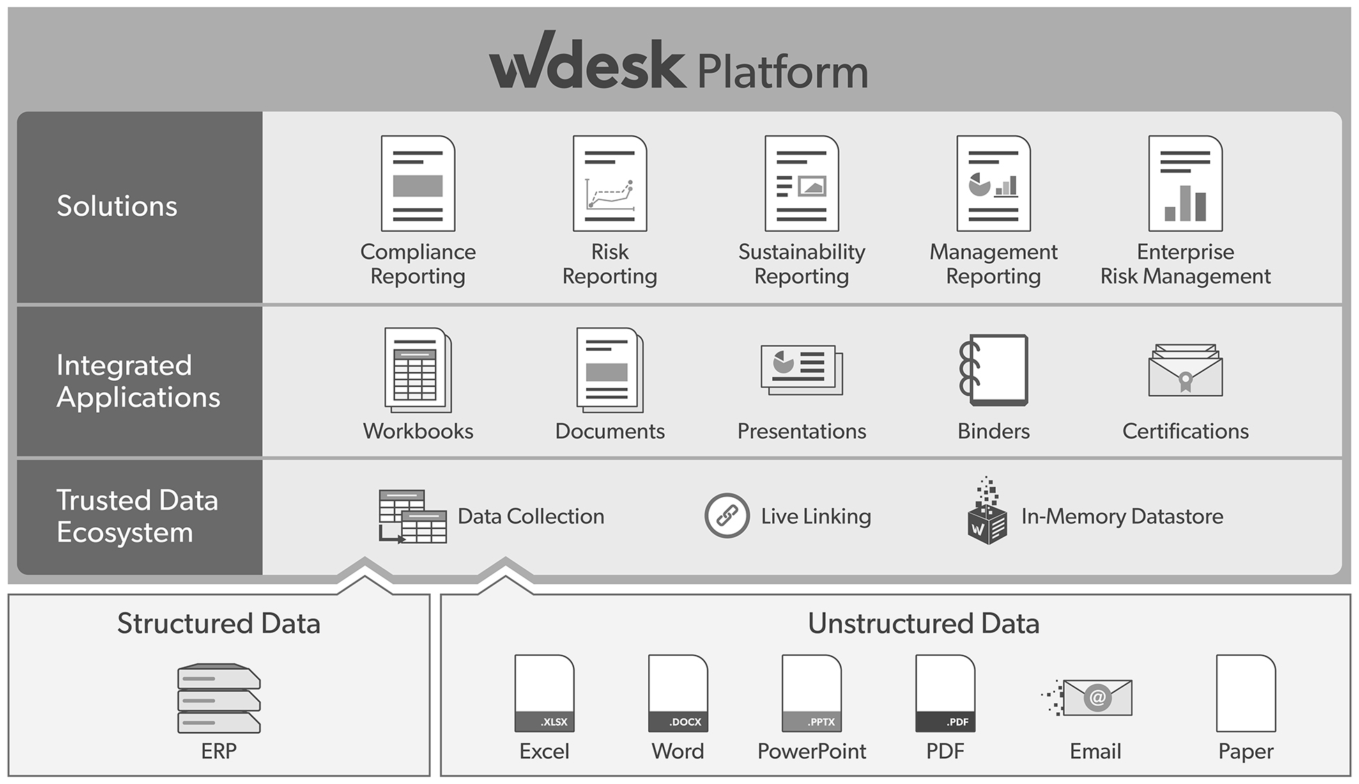 Integrated Platform of Business Productivity Applications. We designed the Wdesk platform as an integrated suite of word processing, spreadsheet and presentation applications that enables users to leverage their structured and unstructured business data regardless of where it resides. Wdesk also provides a certification application that allows any Wdesk viewer to attest to the accuracy and completeness of reports. Users can create data collection and report certification workflows, assign and distribute them within their organization, and monitor the process with a real-time dashboard.