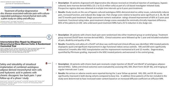 We have obtained an exclusive license to use technology for investigational adult stem cell treatment of disc and spine conditions, including protruding and bulging lumbar discs. The technology is an advanced stem cell injection procedure that may offer relief from lower back pain, buttock and leg pain, and numbness and tingling in the leg and foot.