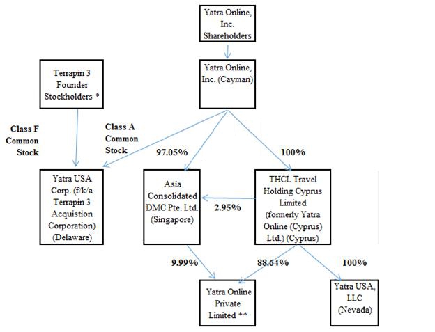 In addition, on December 16, 2016, we completed the business combination with Terrapin 3 Acquisition Corporation, or Terrapin 3, pursuant to which Terrapin 3 became our partially owned subsidiary, which is referred to herein as the Business Combination. Terrapin 3 is now known as Yatra USA Corp, or Yatra USA.