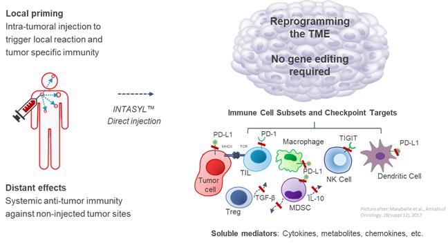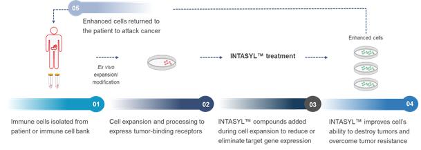 Our development efforts are based on our broadly patented INTASYL™ technology platform. Our INTASYL™ compounds do not require a delivery vehicle to penetrate into tissues and cells and are designed to “silence” or down-regulate, the expression of a specific gene which is over-expressed in cancer. We believe that our INTASYL™ platform uniquely positions the Company in the field of immuno-oncology because of this and the following reasons: