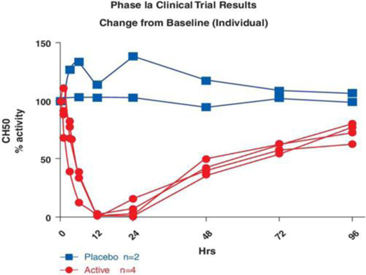 To date, we have demonstrated: (i) 100% inhibition of complement C5 activity by Coversin within 12 hours in a Phase Ia clinical trial in healthy volunteers; (ii) that Coversin inhibits PNH red blood cell lysis in vitro (iii) that Coversin can achieve full complement inhibition in the blood of eculizumab-resistant patients tested to date and (iv) that complement inhibition is complete whether measured by Elisa CH50 U Eq/ml assay or sheep red blood cell lytic CH50 assay, as demonstrated in our 28-day safety study in non-human primates (NHP) where Coversin was dosed once a day for 28 days. We believe that the subcutaneous formulation of Coversin will provide considerable patient benefits, accelerating recruitment for trials, and patient uptake if Coversin is approved by regulatory authorities for commercial sale.