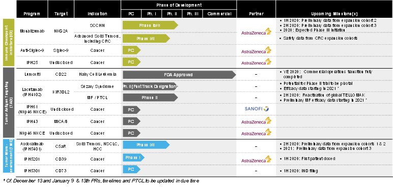 AstraZeneca is a shareholder and is related to the Company through several collaboration and option licensing or license agreements for different drug candidates (monalizumab, avdoralimab, IPH5201 and preclinical molecules) and a license agreement for the rights of the drug Lumoxiti. The payments between the two companies as well as the liabilities and receivables as of 31 December 2019 are as follows: