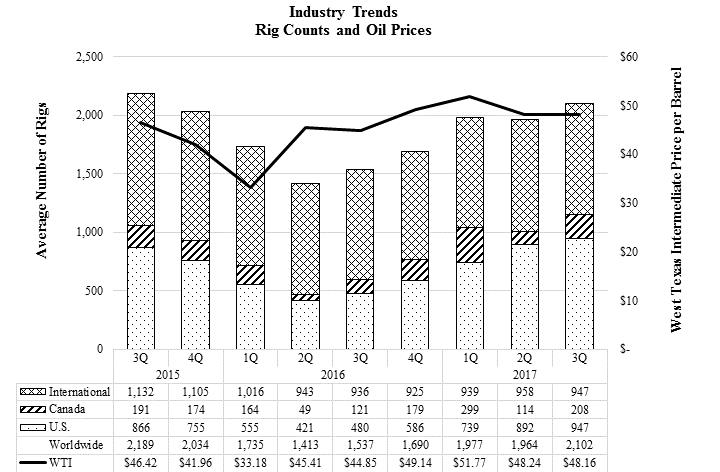 The average foreign exchange rate for the first nine months of 2017, compared to the average for the same period in 2016, decreased by approximately 1% compared to the U.S. dollar based on the aggregated weighted average revenue of our foreign-currency denominated foreign operations. The British pound and Mexican peso decreased in relation to the U.S. dollar by approximately 8% and 3%, respectively, while the Australian dollar and the Canadian dollar increased in relation to the U.S. dollar by approximately 3% and 1%, respectively.