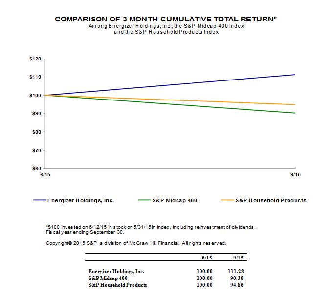 Number of shares of Energizer Holdings, Inc. Common Stock (“ENR Stock”), $.01 par value, outstanding as of close of business on November 18, 2015: 62,398,438.