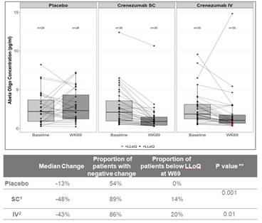 On January 30, 2019, we announced that Roche, the parent of our collaboration partner, Genentech, is discontinuing the CREAD 1 and CREAD 2 (BN29552 and BN29553) Phase III studies of crenezumab in people with prodromal to mild sporadic AD. The decision came after an interim analysis conducted by the IDMC indicated that crenezumab was unlikely to meet its primary endpoint of change from baseline in Clinical Dementia Rating-Sum of Boxes (CDR-SB) Score. This decision was not related to safety of the investigational product. No safety signals for crenezumab were observed in this analysis and the overall safety profile was similar to that seen in previous trials.