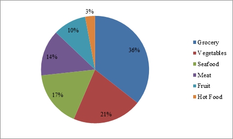 In terms of sales by category, perishables, including vegetables, seafood, meat, fruit and hot food (collectively, the “Perishables”), constituted approximately 64% of iFresh’s total annual sales during the fiscal year 2017. Within this category, vegetables and seafood constituted 37.3% of overall annual sales and 58.6% of the sales attributed to Perishables.