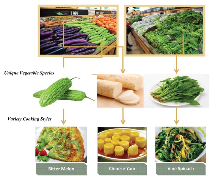 Vegetables make up the bulk of daily consumption by Asian Americans. Asian American consumers usually buy a variety of vegetables in large quantities. More importantly, Asian American consumers use unique vegetable species such as bitter melons, Chinese yams, vine spinaches, Chinese cabbages and winter melon. Asian Americans therefore value supermarkets that provide fresh vegetable offerings at affordable prices.