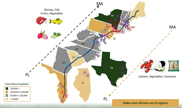 Unique Species and Cuisines — Asian cuisines incorporate many Perishables that are hard to find in traditional U.S. supermarkets. Many cuisines require vegetables not commonly planted in the U.S. or meat not widely used by mass market consumers. The following two examples illustrate the uniqueness in food species and in Asian cuisines: