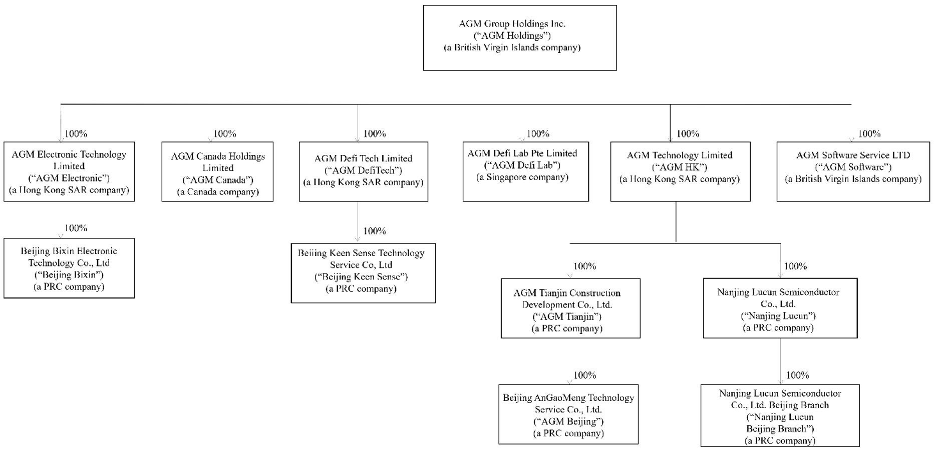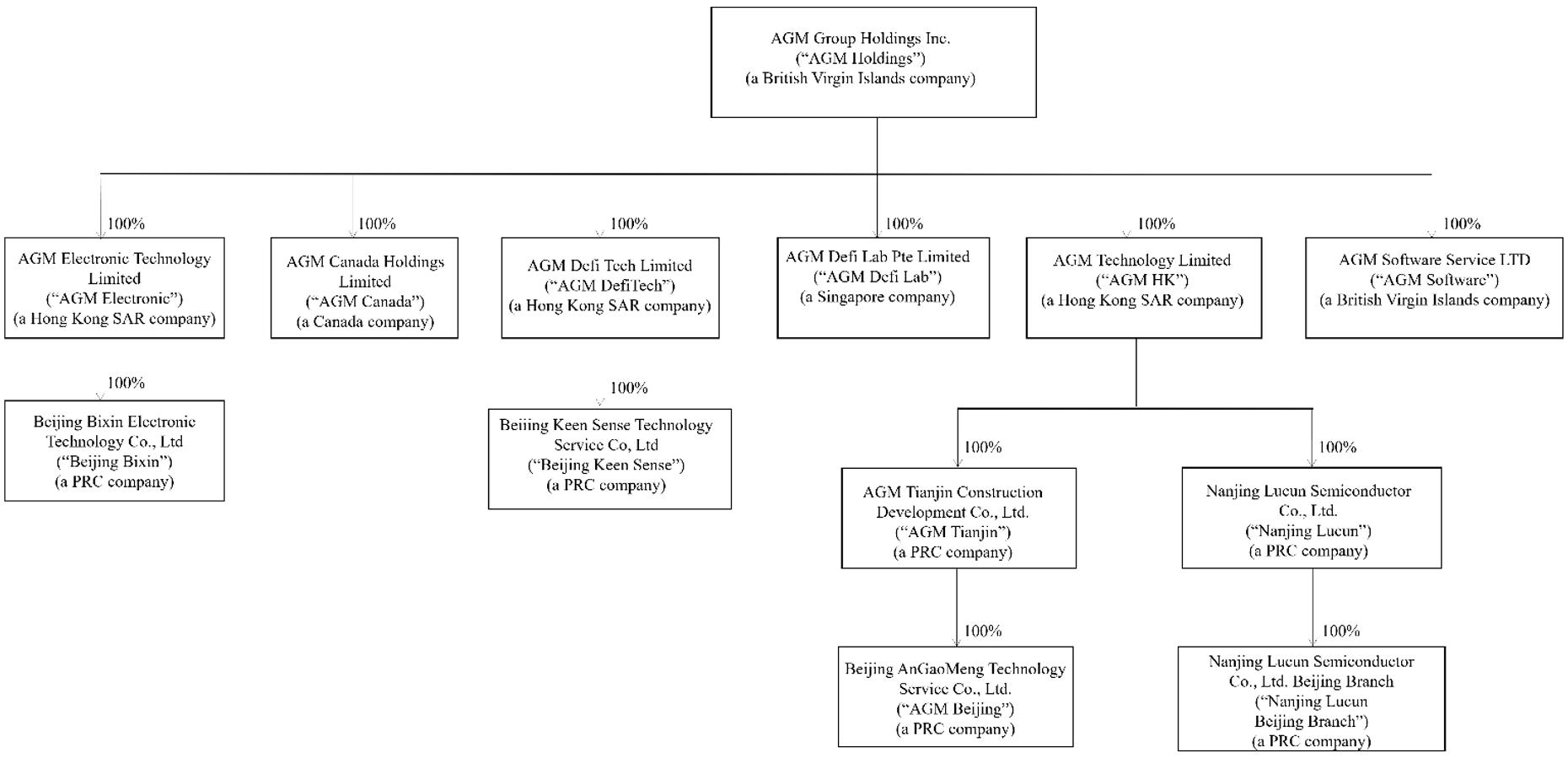 | ● | AGM Technology Limited, a Hong Kong SAR limited company (“AGM HK” when individually referenced) and a wholly-owned subsidiary of AGM Holdings; | |